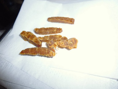 自家製からすみ 実食 魚貝 2017年10月19日 からすみ 味の評価 ★★★☆☆ 以前作ったからすみ。 作り方はこちら。 からすみを作った 出来た時に端っこのささくれみたいな所を食べたら美味しかったけど、ほんのちょっとなのでたいして味はわからなかった。 そのまま冷蔵庫でしばらく寝かしててとうとうちゃんと食べてみた。 時間がたっても美味しそうな臭いがする。 なんか見た目はシワシワであんまり美味しそうではない? 食べやすい大きさにハサミで切ってみた。 酒のつまみに食ってみる。 しょっぱい。 でも美味い。 するめ的な美味さ。 たまごがプチプチと歯ごたえ良く香りとうまみがぎゅっと詰まった一品。 噛めば噛むほど味が出てきて酒のつまみにはこれ以上はないって感じがします。 しかしながら、やはり本物のからすみを食った事がないので何とも言えない。 作り方がいい加減なのとシーラのたまご。 本当はボラのたまごで作る物だし、血合いなんかもきれいに取り除くものらしいし、そもそも作り方があってるのか?? など、様々な疑問は残るが・・・・。 出来たものは確かに美味い物が出来たから、まぁいいか。 その他の食べ方 [0回]PR