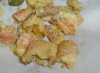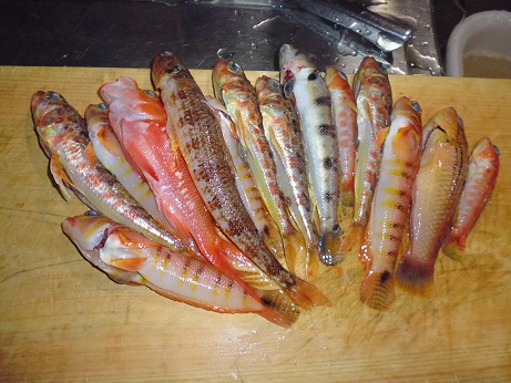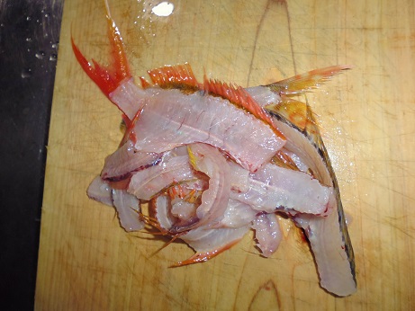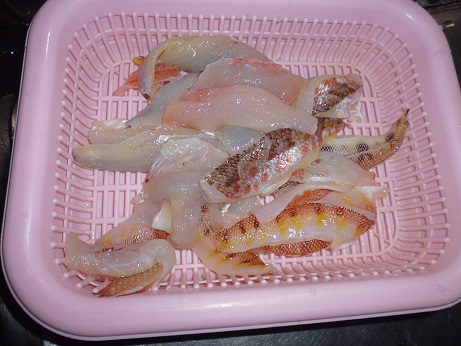 雑魚の天ぷら(ベラ、トラギス、ヒメコダイ、サクラダイ、片口イワシ) 魚貝 2017年05月16日 雑魚の天ぷら(ベラ、トラギス、ヒメコダイ、サクラダイ、片口イワシ) ベラ、トラギス、ヒメコダイ、サクラダイ 味の評価 ★★★★☆ 片口イワシ 味の評価 ★★★☆☆ 釣れた雑魚たち。 うろこを落とし、内臓を出す。 三枚におろす。 骨は後で骨せんべいにするので、取ておく。 身を食べやすい大きさにして 天ぷらにした。 上半分が白身の雑魚たち(ベラ、トラギス、ヒメコダイ、サクラダイ) 皆小さく食べる所が少ないため嫌われる魚だ。 しかし少し手をかけてやると・・・・ うんめー!! 既にどれがどの魚かはわからないけど、白身でふわっとしてて美味しい。 下半分が片口いわし。 内臓とエラだけ取ってそのまま天ぷらに。 イワシはこのサイズなら骨ごと食える。 白身の雑魚たちには劣るが安定のおいしさ。 イワシはどう食べても美味しいと思う。 ついでに昨日食べた真鯛の刺身にした際にとっといた皮。 写真右下になるが天ぷらにしてみた。 意外にジューシーで美味い。 更に甘鯛の皮。 甘鯛は鱗が柔らかいのでうろこ付きで天ぷらで食える。 当然皮目なのでジューシーで美味いのだが、うろこがパリッとしてサクサク。 サクサクとジューシーが同時に楽しめて美味しい。 甘鯛は捨てる所なく美味しく食べれて優秀です。 その他の食べ方 [0回]PR