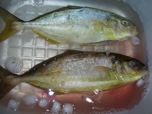 カンパチ(ショゴ)の刺身 魚貝 2017年08月09日 カンパチ(ショゴ)の刺身 味の評価 ★★★★☆ メバチマグロと一緒に頂いたカンパチ(ショゴ)。 小さいんで煮付けにでもして食ってくれっと言われた。 さて何の料理にしようか。 どうさばこうか? なんて考えましたが、せっかく新鮮だし、小さくてもカンパチなんでお刺身がいいかな?と思い刺身にする事にしました。 小さいけどカンパチ。 味はさすが。 メバチマグロも美味かったけど、ちっちゃいカンパチの方が美味い。 本当はもっといいサイズのが美味いんだろうけど、十分です。 その他の食べ方 [0回]PR