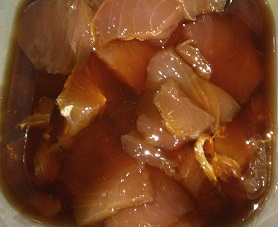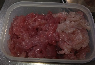マグロの漬けと剥き身 魚貝 2018年12月13日 大量にいただいたメジマグロはお刺身にして食べました。 しかし、食べきれませんでした。 マグロは血の魚です。 切り身で生のままにしておくとドンドン鮮度が落ちて生臭くなります。 なので昨日の残ったお刺身は漬けたれにつけておいて翌朝いただきました。 美味しい漬けたれの作り方は過去記事を参考にしてください。 漬けたれの作り方 漬けたれにつけておくと極端な鮮度落ちが無くなり、逆にたれとなじんで美味しくなっていきます。 一晩漬けてたれとなじんで身がもっちりして、たれがトロっとして絡みます。 マグロは刺身で食べるより漬けのが美味いんじゃないか?とさえ思うほど美味しいです。 あと昨晩のつまみに剥き身を取りました。 刺身にする際に出るアラたちを集めてスプーンで骨回りとかについてる身をそぎ取ります。 刺身を作る時とかと違ってチマチマと根気と手間のかかる作業ですが、魚は骨の周りの身が一番美味しいです。 左側がメバチ、右側がキハダです。 こうやって並べると色の違いがはっきり判ります。 そして味の方は言うまでもないほど美味しいです。 日本酒のつまみにぴったりです。 やっぱり和のお酒には和のつまみです。 おいしくてついつい飲みすぎてしまいました。 今日もごちそうさまでした。 【H】壱岐産1本釣り天然ヨコワ【5キロ】鮮魚 メジマグロ 本マグロ クロマグロ ホンヨコ 本メジ まぐろ 鮪 マグロ 生 まるごと 丸物 丸もの 丸魚 三枚おろし 送料込 価格:30000円(税込、送料無料) (2018/12/11時点) 楽天で購入 [0回]PR