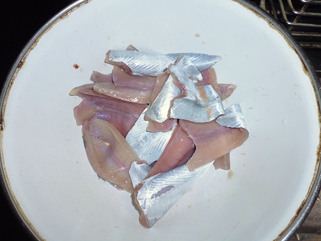 ソウダの塩漬け 魚貝 2016年09月24日 大量のソウダ。 一部を塩漬けにします。 夏になり魚が釣れてくると我が家の冷凍庫は一杯になってしまいます。 そんな時に助かる保存方法。 冷蔵でも数か月もつ。 ソウダに塩をまぶし、 お腹の中にも塩をたっぷりと塗り込む。 このままビニール袋に入れて冷蔵庫へ。 日に日に水分が出てくるので毎日ひっくり返す。 一週間もすると出来上がり。 後は食べたい時に出して、水の中で塩抜きして焼くだけ。 旨味が凝縮して熟成した美味しさ。 出来上がるのが楽しみー。 [0回]