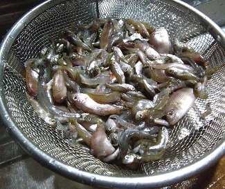 意外に絶品だった 網引きの小魚の佃煮 魚貝 2019年04月20日 先日行ってきた網引きで取れた小魚がまだ大量に残っています。 小分けにして冷凍してあります。 どうやって食べようか悩んだのですが、今回は佃煮にして見ました。 イメージはくぎ煮です。 朝ご飯のお供を目指して作ってみます。 解凍した小魚たちです。 みんな1cmぐらいの小魚です。 色んな小魚混じってます。 真鯛にカマス、鯵、イワシ、その他謎の魚多数です。 さて佃煮は美味くできるでしょうか? イメージはくぎ煮です。 作り方は まず、生姜をみじん切りにします。 鍋に醤油大さじ5、砂糖大さじ8、酢を小さじ1と生姜、小魚、鰹節10gを入れます。 火にかけ沸騰したら弱火で煮ます。 焦げ付かないように混ぜてください。 水気がなくなったらゴマを混ぜて出来上がりです。 見た目は完璧ですが味はどうでしょう。 これは美味しい。 完全にご飯の友ですね。 市販の佃煮なんかよりよっぽど風味がよく美味しいです。 これは大成功ですね。 家族からも評判良く、これだけで他のおかずがいらないぐらいです。 多めに作ったのですが翌日には食べちゃいました。 これは美味しかったからまた作ろう。 【送料無料】 淡路名産・いかなご釘煮 100g入り 【smtb-ms】 いかなごくぎ煮/小女子/くぎ煮/初物/メール便発送【日時指定不可】 価格:1080円(税込、送料無料) (2019/4/20時点) 楽天で購入 [0回]PR