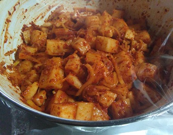 作ったヤンニョムでカクテキ(大根キムチ) つまみに最高!! その他料理 2019年04月13日 韓国唐辛子を使ってキムチの素、ヤンニョムを作ったので大根に漬けました。 大根のキムチはカクテキと呼ばれていれ、焼肉屋さんのメニューなんかによくあります。 なぜカクテキと言うのかは知りません。 大根キムチの方がわかりやすいと思うんですけどね。 きゅうりのキムチなんかはオイキムチとか言いますしね。 大根を角切りにしてヤンニョムを混ぜるだけ。 すぐに食べてみると、生の大根とヤンニョムを食べてるって感じで、味が全く調和していないです。 別々に食べた方が美味しいぐらいです。 これを丸二日間冷蔵庫で寝かせます。 そうすると味がなじんで、 なんと言う事でしょう、あれだけ調和のなかった大根とヤンニョムが一つの味になっています。(ビフォーアフター風に) とにかく大根の甘みを感じつつ旨辛なカクテキの出来上がりです。 キムチってスーパーなんかで売ってるやつは酸っぱくて食えたもんじゃありません。 (あくまで私個人の感想です。人それぞれ好みがありますのであしからず) 美味しい焼肉屋とか台湾屋さんとか行くと辛旨な甘みすら感じるようなキムチがありますが、意外にお値段高いものです。 でも同じレベルの味が自分で再現出来ちゃえば材料費なんて安いものです。 そして作りたてが食える。 安全な食材である。 何より美味しい。 手間はかかりますが、やっぱり自家製が一番です。 今日も美味しくいただきました。 ★韓国料理・韓国食品★甘熟カクテキ(360g)【あす楽対応_関東】【大根のキムチ】【でりかおんどる】 価格:660円(税込、送料別) (2019/4/11時点) 楽天で購入 [0回]