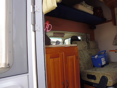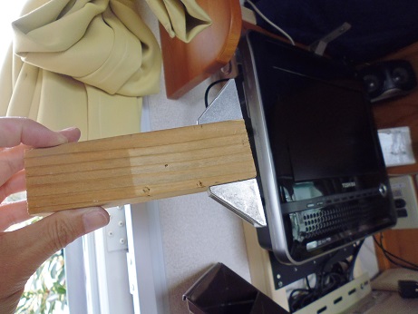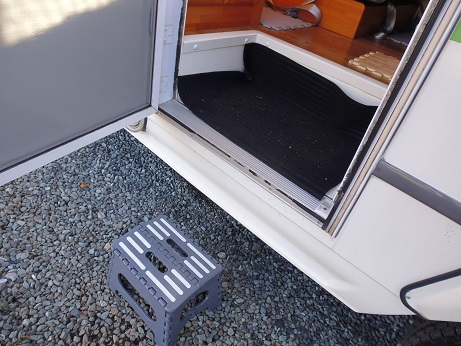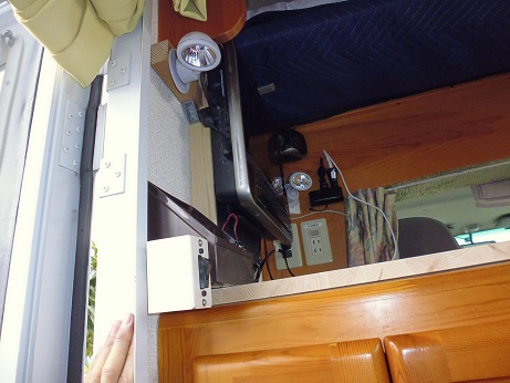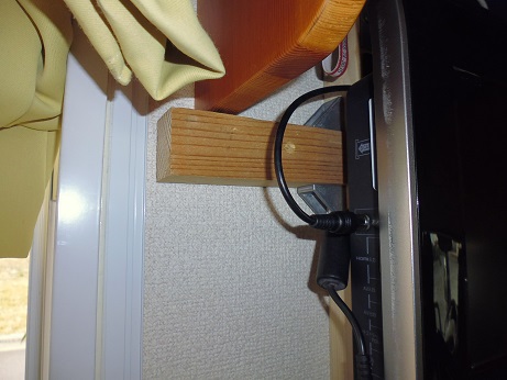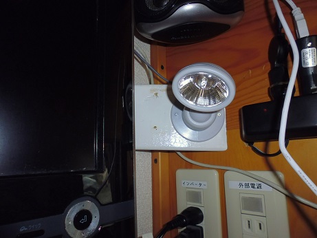 キャブコンの入り口にライトをつけた 車 2017年03月28日 キャブコンの入り口。 昼間はいいけど夜は真っ暗で足元も見えない。 いつも上がってから手探りで室内灯のスイッチを探してつける。 上がる前に足元が少しでも明るくなればなーと思ってた。 なので以前の車で使ってたLEDライトをつける事にした。 ケーヨーオリジナルのソーラーライトだったが、ライトの部分だけ流用して単3電池3本とスイッチをつけた物。 外から入ってすぐに手の届くところにスイッチをつけたい。 この辺につけたい。 ペン立てにつけてしまおう。 木ねじでペン立てに直接スイッチをつけて この部分に足元を照らすべくライトをつけるために 角材にLアングルをつけて TVのベースの角材に木ねじで付ける そこに足元を照らせる角度でライト設置。 ライトがもう一個あるので、元のオーナーがTVをつけてたであろう所に設置。 出来上がりはこんな感じ。 外から見るとこんな感じ。 夜になって試してみた。 夜の入り口はこんな感じ。 何も見えない。 ライトをつけると入り口の足元と車内が照らされて十分に明るい。 これで手探りでスイッチを探さなくても済むようになりました。 今までのキャンピングカー快適化 [0回]PR