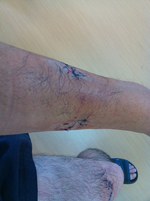 ウツボに噛まれた (傷口の写真あり、回覧注意) 釣り、磯物採り 2016年07月20日 家族とキャンプをしながら海水浴に西伊豆へ。 いつものように銛を片手に素潜り。 水深約10m。でかいウツボがいたっ! これは油がのって美味そうだ。 銛で仕留めたが、暴れて銛から外れた。 と、次の瞬間ウツボが向かってきた。 過去10年間ウツボを突きそこなってもウツボは逃げるだけで向かって来た事はなかった。 そのまま、左腕にガブッと噛みついてきた。 やばいと思ったが水中ではよける間もなくウツボのが機動力は上だった。 傷みより噛みついて離れないウツボを何とかしないとと腕を振りながらウツボを振り放そうとする。 ぶちぶちっと肉が切れる感じで振りほどく。 そして水面に上昇する途中で今度は左足にガブリっ! しかも、左腕からの大量の出血で周りの海水が濁って見にくい。 銛と右足のフィンで対抗。 なんとか離れた。そしてウツボは去っていった。 ウツボを食ってやろうと思ったら逆に食われてしまった。 そこそこ沖に出てたので海岸まで戻るのだが、今回ほど遠く感じた事はなかった。 大量の出血の為、自分の後ろは赤く海水が濁っている。 なんとか海岸まで戻って車まで行き応急処置をする。 海岸から車までのルートに血が点々と・・・。 傷口を見ると皮膚が裂けて肉が見えている。 しかも物凄い激痛。痛すぎて笑いが出てしまう。 車で地元まで約3時間かけて帰り、病院へGO! 先生が「ウツボですか・・・。ウツボは初めてですねー。」 スマホでウツボを調べている。 「毒はないみたいですがばい菌による感染症が心配です。」と。 しかも先生は伊豆の下田にいたらしいのだが、それでもウツボは初めてだという。 結局噛まれた場所を縫ったのだが、先生に何針縫ったのか聞いてみたら、そういうレベルでなくいっぱい縫いましたと言われた。 足 腕 ウツボは危険です。 こんな目にあったのでウツボが嫌いになるかとも思ったが、奴は食ってやらんと気が済まない。 リベンジに燃えているのだが、家族にウツボを突くのはもうやめてくれと、止められました。 仕方ないので、釣る事にします。 だってウツボ美味しいんだもん。 その他の狩り [0回]PR