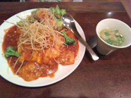 彩菜チャイニーズ厨房 Sin-to(シント) その他料理 2017年08月04日 御殿場の彩菜チャイニーズ厨房 Sin-to(シント)にランチに行って来た。 こじんまりとした小さな店だが、おしゃれできれいなお店だ。 担々麺とエビチリオムライス。 どちらも中華の赤い普通のメニュー。 でも、お店の景観と一緒で盛り付けもおしゃれできれい。 担々麺は花椒の香りがして美味い。 エビチリオムライスは辛いエビチリとたまごの相性が良く辛さを抑えてくれる。海老は大きくプリッとして美味い。 いやぁ、贅沢した感じで大変満足でした。 [0回]