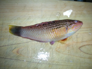 雑魚の酒蒸し 魚貝 2017年04月26日 先日の雑魚たち まとめて酒蒸しにした。 それぞれの味の評価は以下の通り ベラの酒蒸し 味の評価 ★★★★☆ ベラは酒蒸しがよくあう。身がゆるい魚は酒蒸しが美味しいようだ カサゴの酒蒸し 味の評価 ★★★☆☆ カサゴはどう食べても美味しい魚。 もちろん酒蒸しも美味いがベラには劣る。 サクラダイの酒蒸し 味の評価 ★★★★☆ くせのない白身で酒蒸しにして美味い。 ベラには劣るがカサゴより美味い。 シマセトダイ??の酒蒸し 味の評価 ★★★☆☆ 身がしっかりしていて美味い。 カサゴと同じくらい。これは塩焼きのが美味しかったかな? カレイの酒蒸し 味の評価 ★★★★☆ カレイって初めて釣った。 味は予想以上に美味い。 ベラ並みに美味い。 身が柔らかく口でほろほろとろける感じ。 白身の魚は困ったら酒蒸しがお勧め! その他の食べ方 [0回]