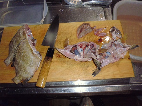 瀬戸内の魚 頭の塩焼き(ヒラ、セトダイ、のどくろ) 魚貝 2017年03月07日 頭の塩焼き(ヒラ、セトダイ、のどくろ) 味の評価 ★★★☆☆ それぞれの魚をさばく過程で出た頭の部分。 それぞれ塩焼きにしました。 焼き上がりの写真は撮り忘れました。 味の方は特にうまかったのセトダイ。 意外や意外、セトダイは無難な味で主張せず、そこそこ美味しいイメージ。 当然のどくろが一番だと思ったらセトダイが一番でした。 身がしっかりしててはっきりした味わい。 でも、当然のどくろも脂がのってて美味しかった。 ヒラだって普通に美味しかったですよ。でも、やっぱり変な所に小骨が入ってる。 つくづく面白い魚です。 今回で瀬戸内の魚シリーズは終了です。 瀬戸内の魚は美味しかったのですが、一つ気づいたことがありました。 なぜか、魚をさばいてて臭くない。 魚特有の生臭さがあまりしないんです。 これは鮮度の問題ではありません。 私も釣り人の端くれです。 釣った魚はちゃんと血抜きして、しっかり冷やして鮮度抜群の状態で持ってきます。 それでも生臭さはあるんです。 でも、瀬戸内の魚はみんなそんなに臭くなかった。 なんでだろ? でも、だからこそ魚は美味い。 瀬戸内の魚は本当に美味しかった。 最後の送ってくれた豊栄水産様、ありがとうございました。 そして何より、どこぞの馬の骨ともわからない私の為に、豊栄水産と取り次いでいただいた野食ハンマープライスの茸本様、本当にありがとうございました。 その他の食べ方 [0回]