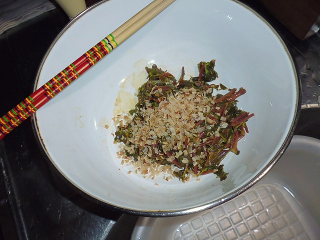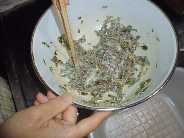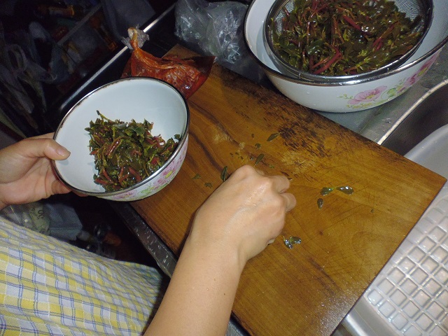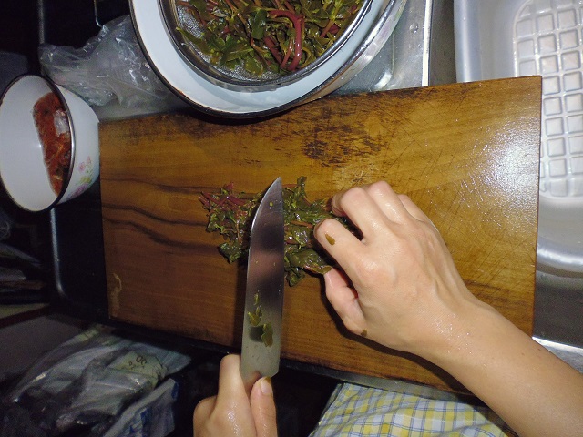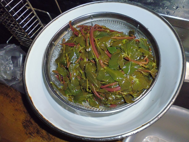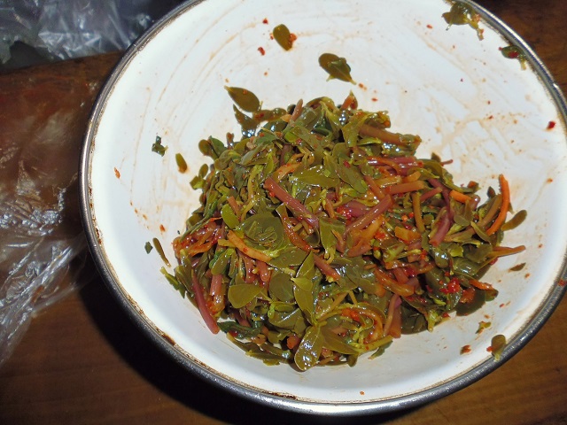 スベリヒユのキムチ 山菜、野菜 2016年08月22日 スベリヒユのキムチ 味の評価 ★★★☆☆ ヤンニョムが余ったのでスベリヒユのキムチを作ってみた。 いつものごとく下処理をしたスベリヒユを 小さく刻み よく水をきって ヤンニョムと混ぜる スベリヒユのキムチの出来上がり。 試しにすぐに食べてみたが、全くヤンニョムがなじんでない。 こりゃぁ失敗か?と思ったけど、一晩寝かせたらいい感じになって、美味い! スベリヒユはキムチも美味かった。 その他の食べ方 [0回]