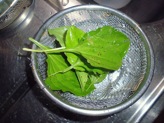 オオバコの天ぷら 山菜、野菜 2016年08月03日 オオバコの天ぷら 味の評価 ★★★☆☆ 以前山菜ウォーキングに参加した時に、オオバコは食べれると聞いているがどんなものかと聞いてみたら、オオバコの筋が硬くて食いにくいと言っていた。 それでも一応と思い少し採ってきた。 山草も天ぷらならアク抜きとかしなくていいから楽ちん。 左上がオクラ。右上が赤ジソ。 左下がオオバコ。右下が青ジソ。 オクラは畑から採ってきた物だか、普通に美味しい。 私はシソは嫌いなのでパス。 で、オオバコはと言うと美味い。 筋なんて全く気にならない。おかしいなぁ。 しかも少し肉厚で味わい深い。 なーんだ、美味しいじゃん。 その他の食べ方 [0回]