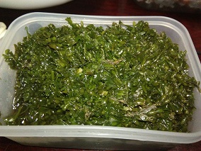 アカモクらしき海藻とその他の採ってきた海藻を食べてみた。 魚貝 2018年05月18日 採ってきたアカモク。(だと思う海藻) 早速食べてみました。 まずは茹でてみました。 茶色が茹でたら鮮やかな緑色になり美味しそうです。 確かこれを細かく刻んでやれば粘りが出てきてポン酢なり昆布汁をかければ美味しいアカモクの出来上がりのはず。 刻んで、昆布汁かけました。 美味しそうに見えますが、粘りがありません。 完全にただの刻み海藻の昆布汁かけに見えます。 食べてみます。 「・・・・・・・・・・・。」 家族全員言葉がありません。 アカモクだと思って食べたのにこの期待感を完全に裏切られたショックで呆然としています。 しかもそんなにまずくはないのですが、口当たりが悪い。 ボソボソして食べにくい。 食えなくはないですが、我が家では不人気でした。 その他の謎の海藻ですが、 茹でて食べやすい大きさに切りました。 まぁどれも食べれます。 アカモクだと思って食べた海藻よりは美味しいです。 ただあまりおいしくないので次回はもういいかな?って感じです。 海藻も難しいですね。 【送料無料】アカモク・ギバサ 【1kg詰め込みパック】[冷凍]無添加(解凍するだけ!熱々ご飯・うどんにめんつゆ・醤油などと合わせてどうぞ♪)ぎばさ あかもく スーパー海藻fsms [0回]