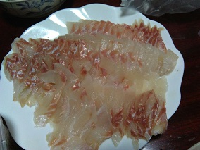 捨てられたミズウオをもらってお刺身でたべてみた 魚貝 2018年05月14日 先日磯物を採りに行った際に変わった魚を頂いた。 先日の記事はこちらです。 西伊豆方面に磯物を拾いに行ってきた 貝編 西伊豆方面に磯物を拾いに行ってきた 海藻編 その際に変な魚を採った方がいて、捨てるように置いてあった。 「これ捨てるんですか?捨てるんだったらください。」 と交渉した所、快く譲っていただきました。 太刀魚みたいな魚・・・。 悪そうな顔つき。 ネットで調べて見るとどうやら深海魚でミズウオらしい。 しかも、ネットでも食った事のある人が少ないらしく記事が少ない。 調べていくと何人か食った人はいるみたいだが、いづれも美味しくないと・・・。 少ない記事のなかでも食べたことのある人の一人に、私の尊敬するブログのハンマープライスがあった。 この人はなんでも食べてるなー、と感心してしまう。 まぁどうであれ毒は無いようなので食べてみることにしました。 身はゆるゆるで手でさばけるほど。 骨も柔らかく軟骨みたい。 手でさばいていくと胃袋に異物が入ってる感触がある。 胃袋を開けてみると中にはティーバックの袋が入っていた。 なんだか何でも食べてしまう魚らしい。 そして写真はありませんがお刺身にしてみました。 食べてみると、くにゅくにゅしてる・・・・。 味はない。なんだかビチャビチャ。 さばいてる時からそうでしたが、何をしても水が身から湧いてきて常にまな板はびしょびしょ。 さばき終わって刺身にしてもそれは変わらず、水っぽい。 これがミズウオと呼ばれる由縁かな。 はっきり言って美味しくない。 たとえるならナタデココみたい。 醤油をつけても自身の水分で流れてしまい味がしない。 こりゃぁ食い物ではないな。 我が家では食べれなない魚は、毒のある物ぐらいですが初めて全く食えないお魚に出会いました。 こんな魚もいるのね。 まだまだ色んな魚がいるんだねぇ。 [0回]PR