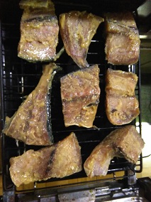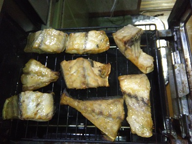 ワラサの西京漬け 魚貝 2018年03月05日 以前釣って西京漬けにして冷凍しておいたワラサを食べた。 こんな感じで凍ってました。 解凍してみたら、いい匂いがします。 早速焼きます。 魚焼きグリルに並べて焼きます。 西京漬け独特のいい香りがします。 そして焼きあがりました。 西京焼きって普通?味噌でつけるのですがその際に味噌が魚の身に直接つかないように布を当てたりキッチンペーパーを当てたりして味だけしみこませる物が多いです。 その方が見た目もきれいだし、焼いた際に味噌が焦げて見た目も悪くなるのを防げます。 しかし我が家ではついてる味噌も焼くと美味しいので、あえてつけたままにします。 お皿に盛り付けて出来上がりです。 約半年冷凍庫で眠ってたので味の方はちょっと心配ですが食べてみます。 いやぁ美味しいっ! 全然劣化してません。 やっぱり漬け込んで冷凍しておくと日持ちします。 もともとブリ系の魚が好きなので特に美味しい。 自家製!10キロ以上のよく肥えた最高の天然寒ブリ西京漬け【冷凍】1切れ[国産(山陰浜坂産)](寒ぶり、寒鰤、味噌漬け、みそ漬け、漬け魚) ワラサの西京漬けはばっちり成功です。 今年も青物の季節にワラサが釣れたら西京漬けを作ろう。 おいしかったー。 [0回]